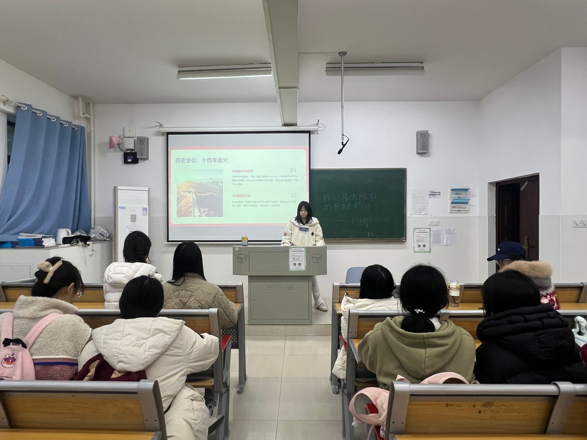 (通讯员 伍雅兰 陈静怡 何畅)12月8日下午,2023级金融学班青马小组在中和楼212教室开展以“铭记伟大胜利,弘扬抗战精神”为主题的理论学习活动,组长伍雅兰担任此次活动的主持人。