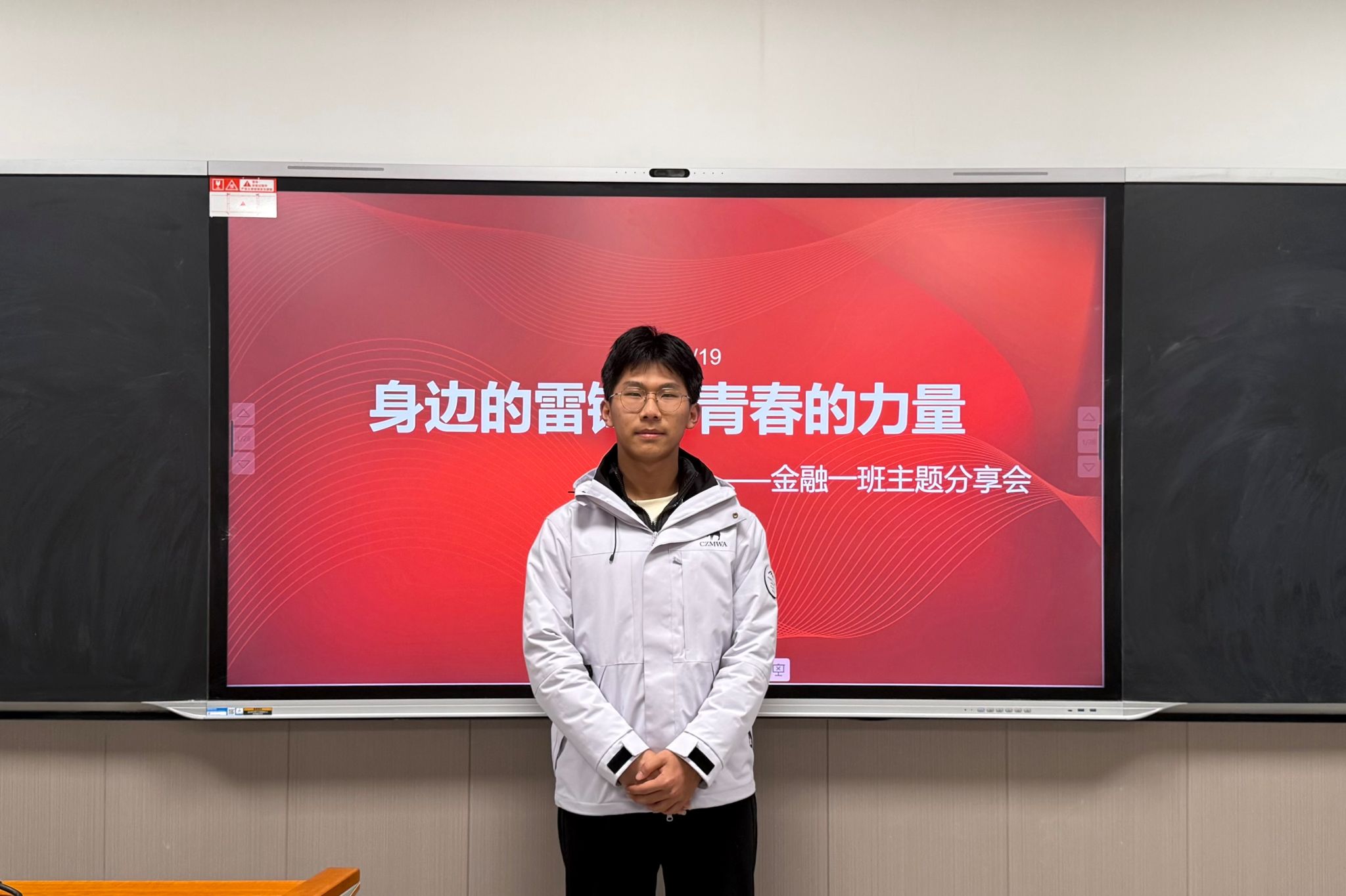 (通讯员 浦晓帅 杨依 夏靖霖)3月18日下午,2025级金融一班在桃花坪校区计量局109教室开展“身边的雷锋,青春的力量”主题分享会。志权委员阳寅担任主讲人。