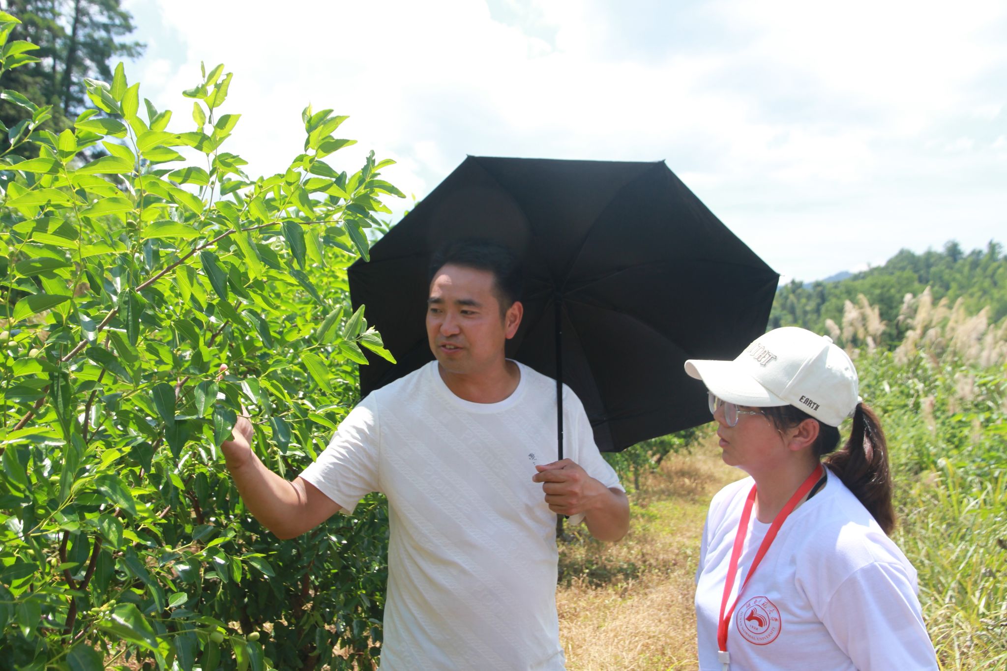 杨喜华带领实践团成员参观绥宁南亩种养专业合作社。参观过程中,杨喜华向实践团成员讲解脆枣的生长习性、品种分类、种植工艺与营养价值,并介绍脆枣基地的产量、收入、成本等基本经营信息。他表示,脆枣产业作为大园村的重点产业,能够有效带动经济增长,提供更多就业岗位,在增加农民收入、助推产业兴村等方面发挥着巨大的作用。随后,朱晓燕围绕脆枣的“供产销”问题、基地发展面临的困难等方面向杨喜华提出疑问。针对上述提问,杨喜华详细介绍了脆枣的供应平台、生产方法与销售渠道,并表示基地发展面临的主要困难是资金与气候。采访过程中,实践团成员了解到,脆枣基地将改进种植方法,减少降水过多给脆枣带来的损害。