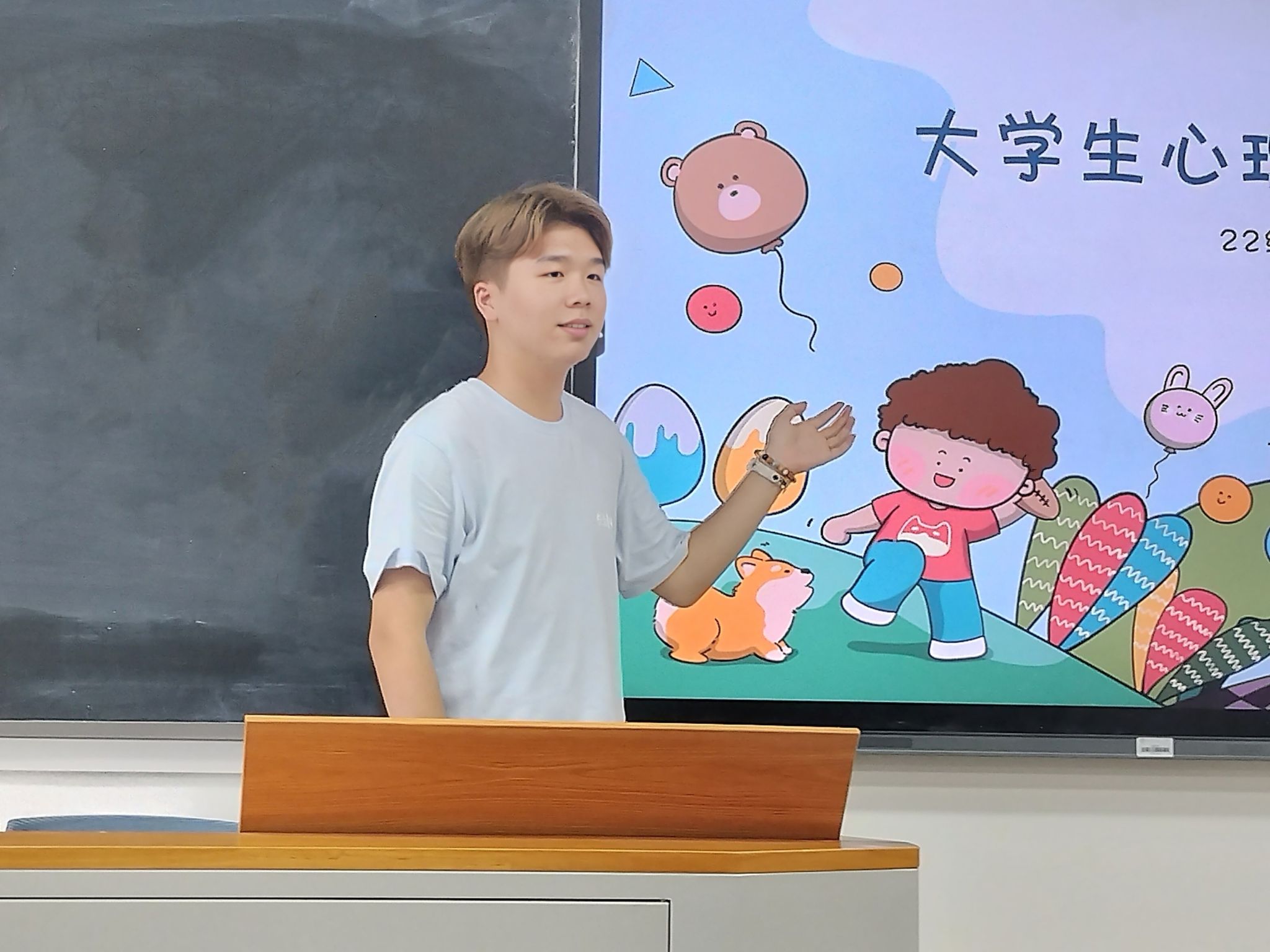 会议伊始,石毅文以上海市精神卫生日宣传片《光照进来的地方》为切入点,向同学们介绍了“世界精神卫生日”的活动时间以及2023年的全国宣传主题“促进儿童心理健康,共同守护美好未来”。在心理测试环节中,同学们积极参与心理测试,并通过测试获得了一份基础的抑郁型心理问题分析报告。石毅文对此次活动进行总结,分享如何进行心理健康养护的方法,倡议同学们正视心理健康问题,维持情绪稳定,保持心情愉快。