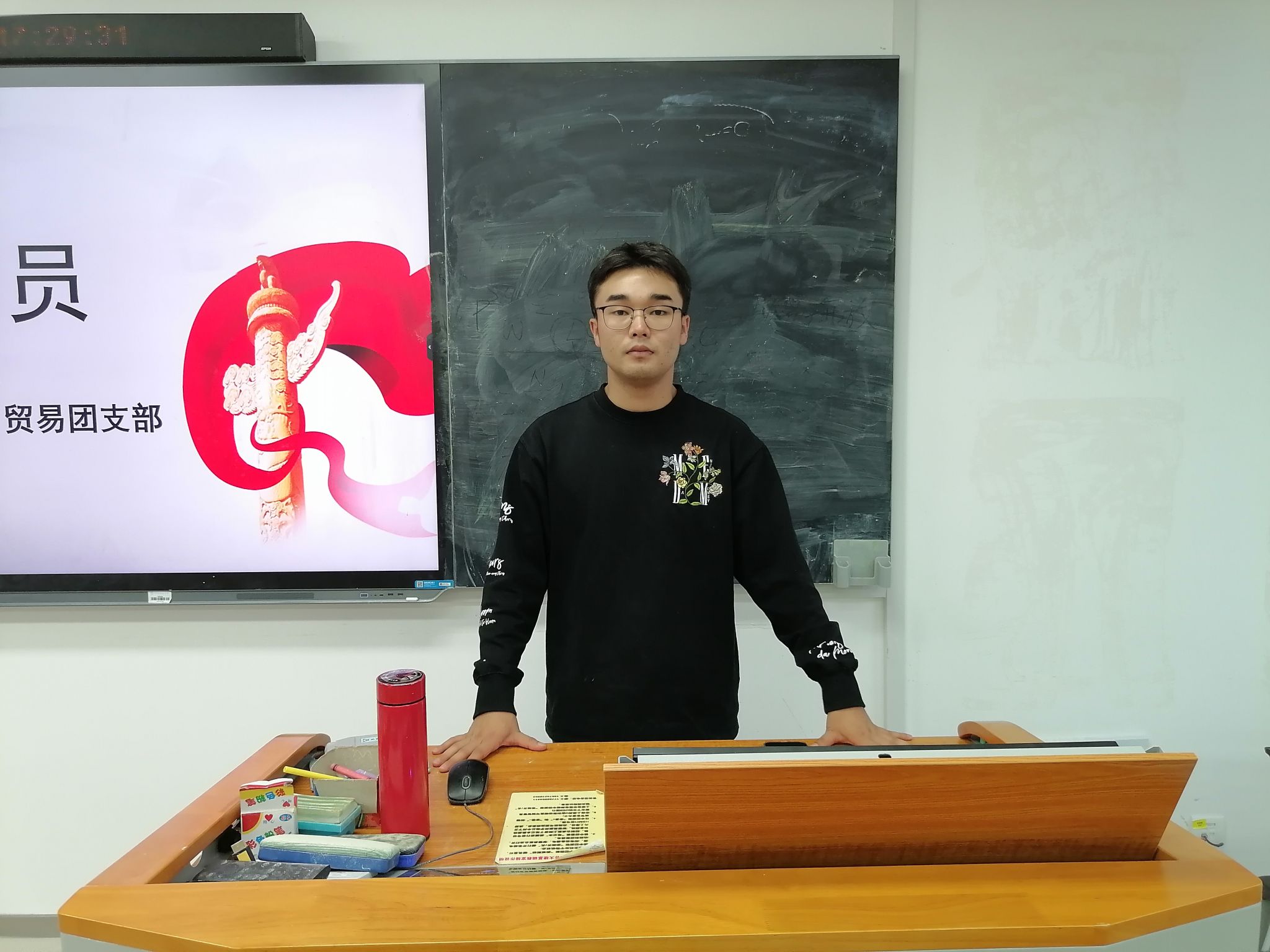 买达提向与会人员讲解新发展团员评议制度的内容。随后,朴思颖、王俊航、阿卜杜•拉亚合甫、张轩石、王哲五位申请人分别上台发言,讲述申请入团的理由和对团组织的向往。发言环节结束后,国贸班全体团员通过线上投票的方式进行民主评议,决定新发展团员人选。会议尾声,买达提对会议内容进行总结,并就如何推进班级团组织建设提出建议。