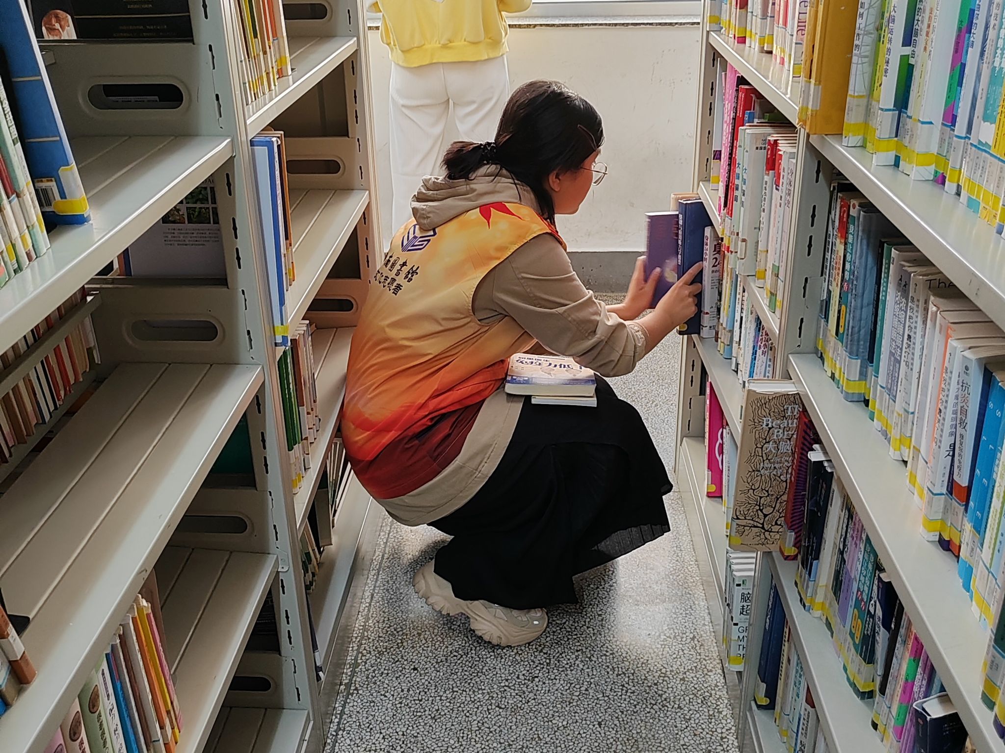 活动当天,志愿者们分为两个小组开展工作。第一组志愿者在大厅开展人员引导工作,以维持图书馆的秩序,营造安静的阅读氛围。第二组志愿者前往不同书籍区,对书籍进行归类整理,将书籍有序放置在书架上,并对借阅室进行打扫,维护良好的阅读环境。活动结束后,志愿者们在湖南省图书馆大厅合影留念。
