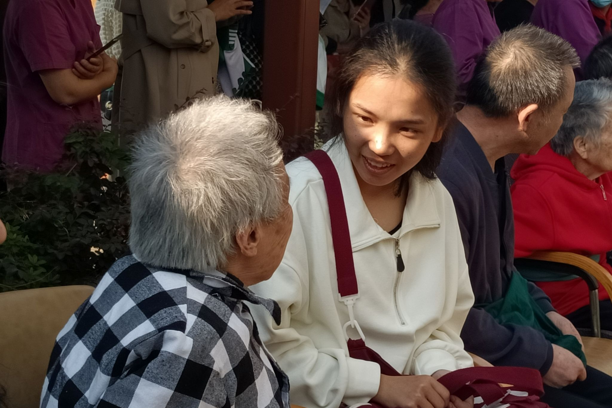(志愿者与老人聊天)