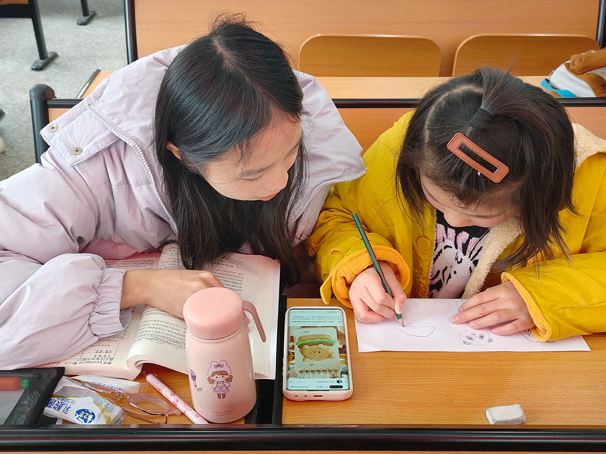 活动伊始,志愿者辅导小朋友们完成作业,并耐心解答小朋友们学习上的疑惑。在讲解环节中,志愿者向小朋友们普及了中国八大菜系与各地名吃,使小朋友们对中华饮食文化的多样性有了初步认知。随后,志愿者通过问答形式,鼓励小朋友主动了解学习食品安全的相关知识。小朋友们还在志愿者的陪伴和指导下绘出一幅幅宣传节约粮食理念的图画,进一步加深了小朋友对节约粮食理念的理解。