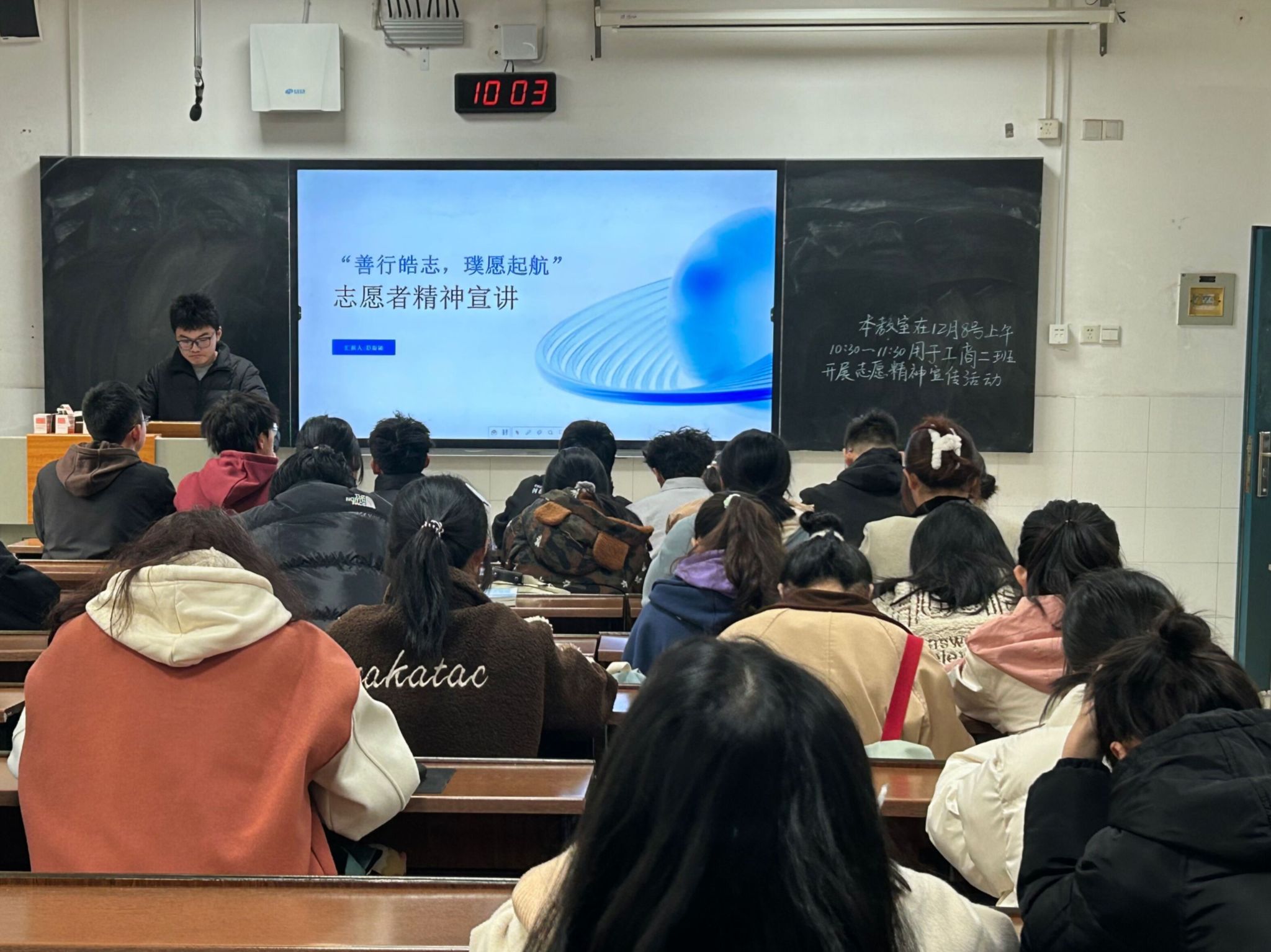 (通讯员 储子钰 邓翔瑞 周昕芮)12月8日上午,2023级工商二班在二里半校区至善楼212教室开展“志愿者精神”主题班会。青年志愿者协会小组长彭新颖担任主持人。