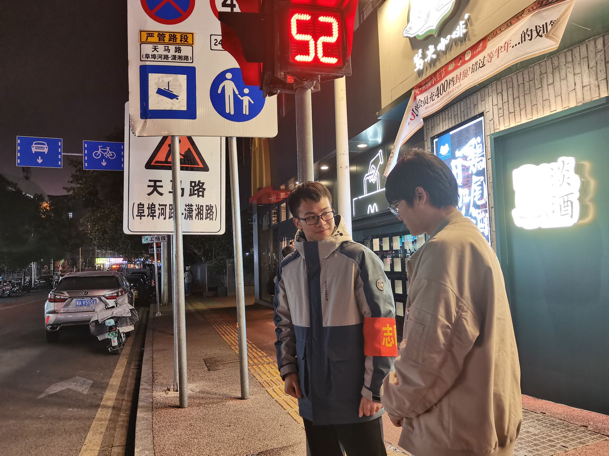 活动开始前,志愿者们先在天马学生公寓门口集合,李雨龙分发志愿者袖章,就活动内容和安全问题进一步说明,并指引志愿者们到阜埠河地铁站附近开展志愿者工作。活动期间内,志愿者们在多个路口维护交通秩序,主动为行人引路,劝导行人勿闯红灯、勿占用非机动车道和盲道,行人积极配合志愿者工作。活动结束后,志愿者们拍照留念并分享自己的心得体会。