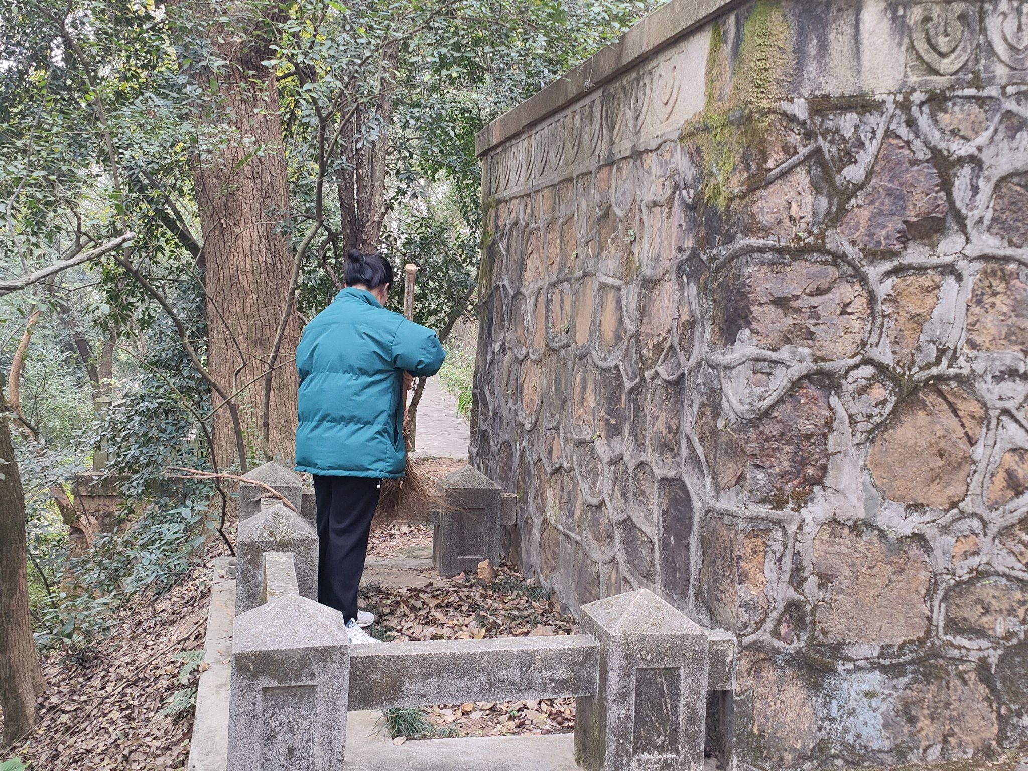 活动当天,志愿者们在岳麓山抗战文化园集合,随后一同出发前往第七十三军抗战阵亡将士公墓。抵达后,志愿者们在第七十三军抗战阵亡将士公墓前举行献花仪式,并集体默哀三分钟,沉痛哀悼先烈英杰,深切缅怀先烈事迹。在默哀仪式结束后,志愿者们认真清扫周围的落叶,清理残留垃圾等。