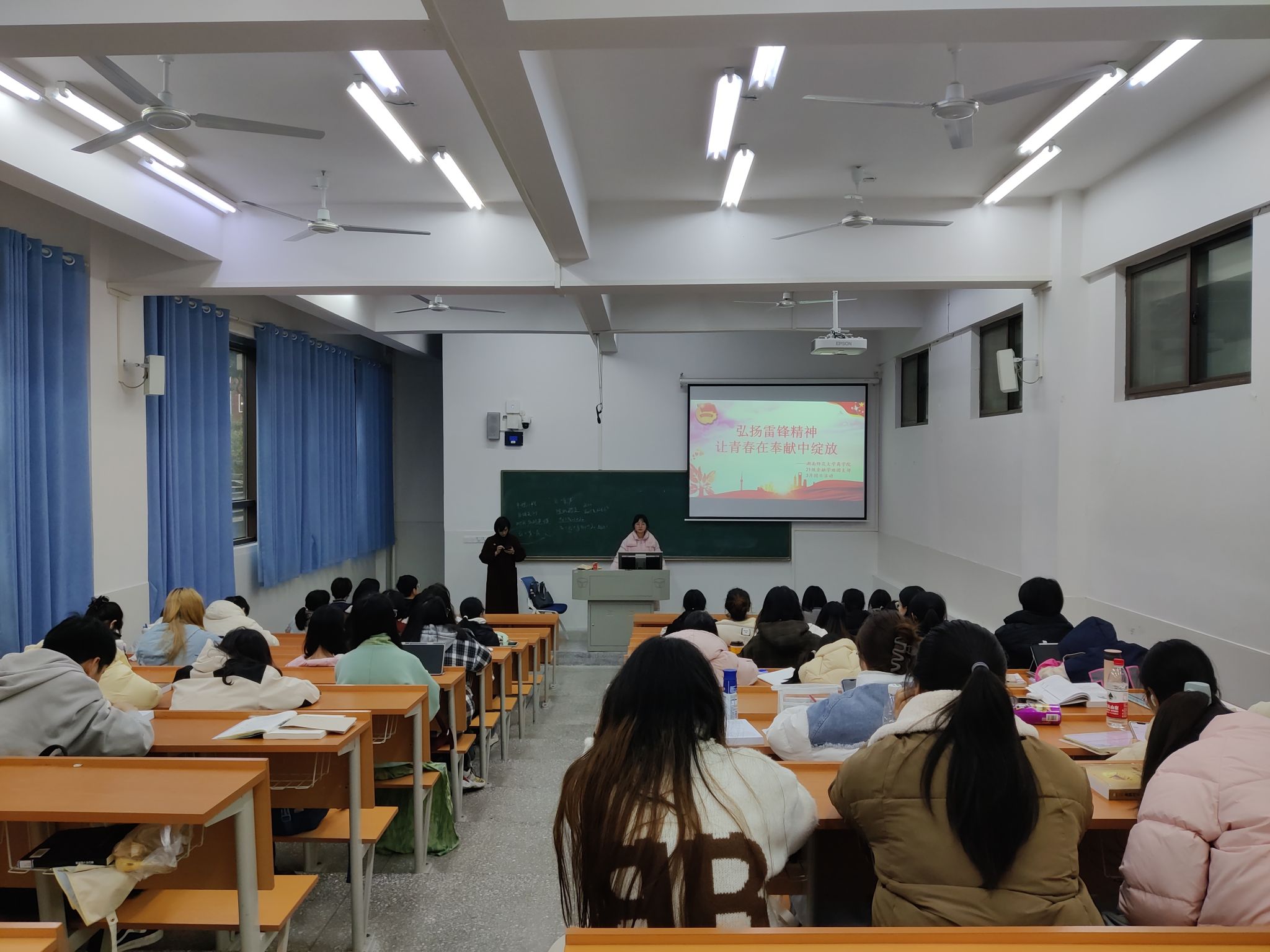 活动开始,主持人简单介绍雷锋的成长背景和人生历程,分享他的感人事迹,进而结合新时代背景指出雷锋精神新的时代内涵与具体内容。随后,全体同学一起观看“弘扬雷锋精神,让青春在奉献中绽放”主题的相关视频,了解各行各业“新时代雷锋”的感人故事,认识到在新时代学习和弘扬雷锋精神的重要性。主持人邀请同学进行“我身边的雷锋故事”主题分享,同学们踊跃发言,畅谈身边的雷锋事迹,互相交流心得感悟。最后,主持人总结雷锋精神的时代价值,倡议同学们用实际行动践行雷锋精神,争做新时代好青年。