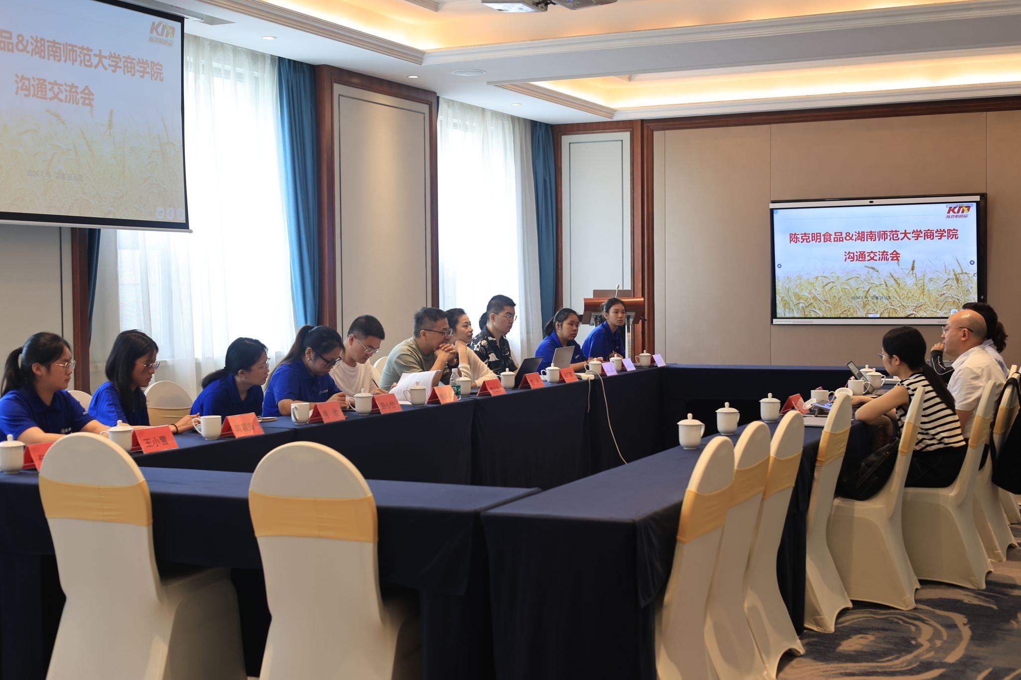(通讯员 李雯 王俊航 甘新悦)7月24日下午,商学院经济学实验班科研实践团与陈克明食品股份有限公司负责人举行沟通交流会。商学院副院长曹虹剑,“潇湘学者”特聘教授、实验班负责人熊瑞祥,金融学系副教授、实验班班主任袁礼出席此次会议。