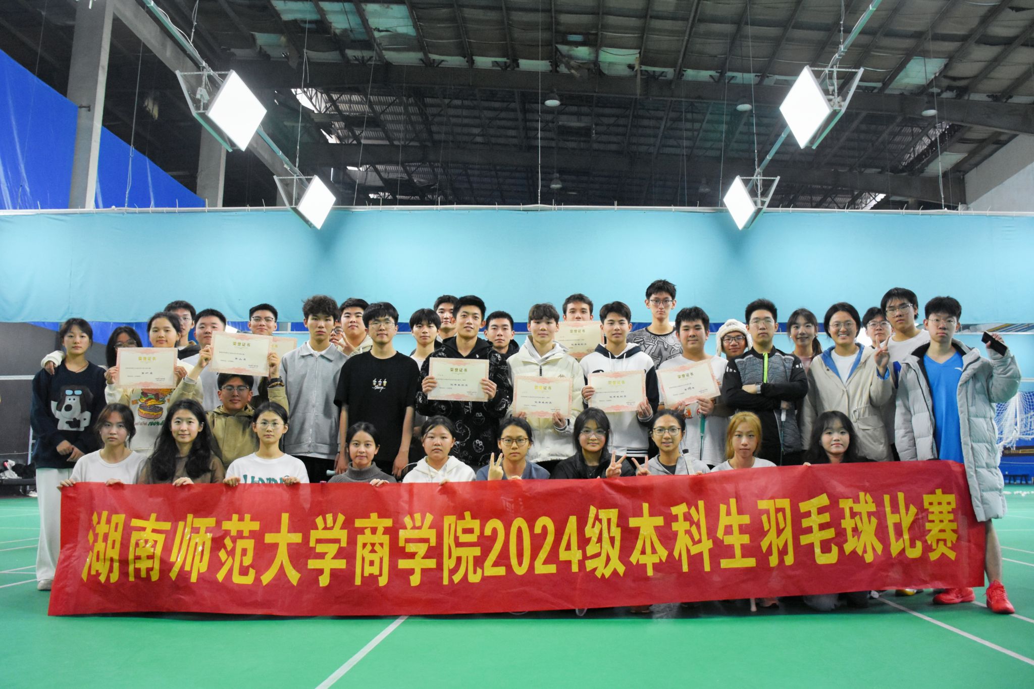 (通讯员 芦家泽 郑茜)11月24日,商学院2024级本科生羽毛球比赛在聚星羽毛球馆举办。商学院2024级辅导员聂志欣、梁绮珈,2024级班主任何昀、罗嘉出席此次活动。
